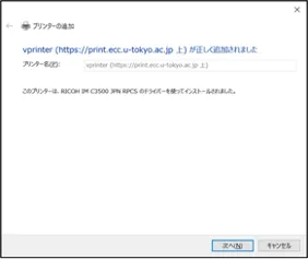 vprinter (https://print.ecc.u-tokyo.ac.jp 上)」と表示されていることを確認し,「次へ」ボタンを押してください.