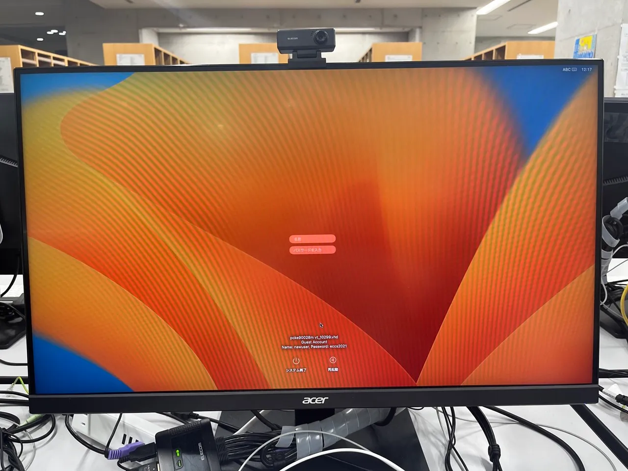 Mac環境が起動し,ログイン画面が表示されます.以下の情報を入力してください.