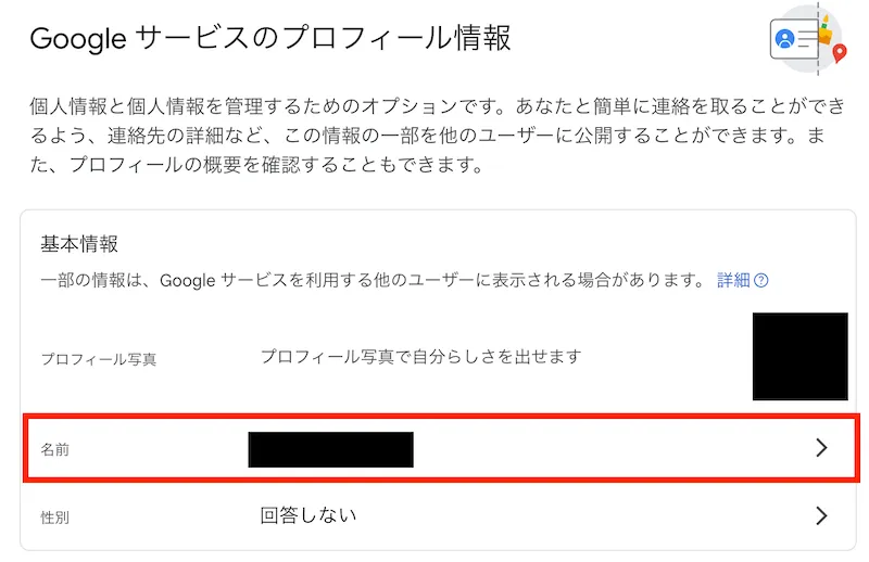 - 「基本情報」欄内にある「名前」をクリックしてください.